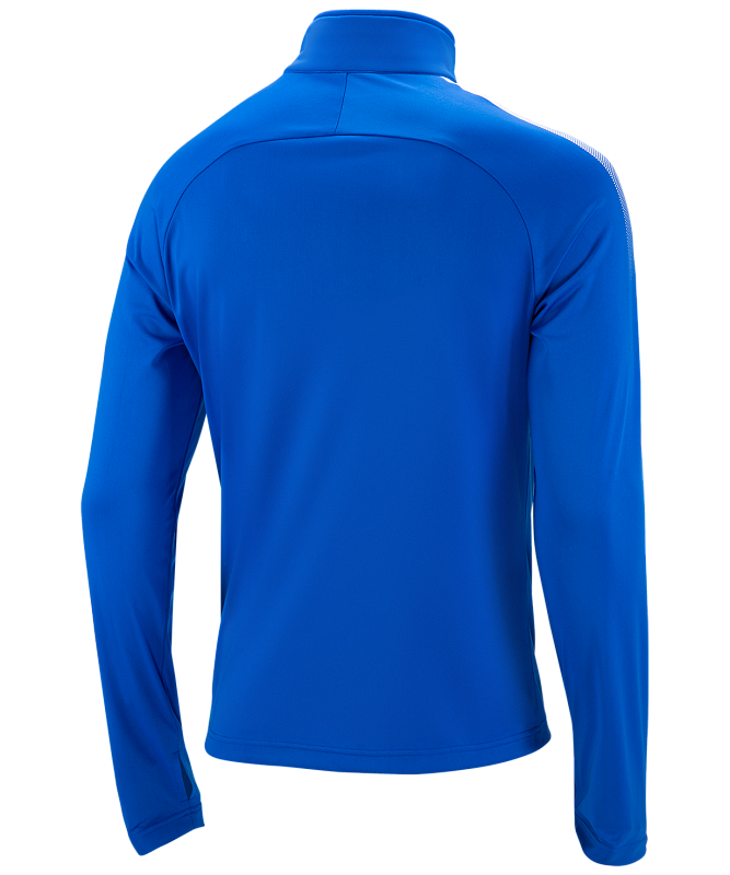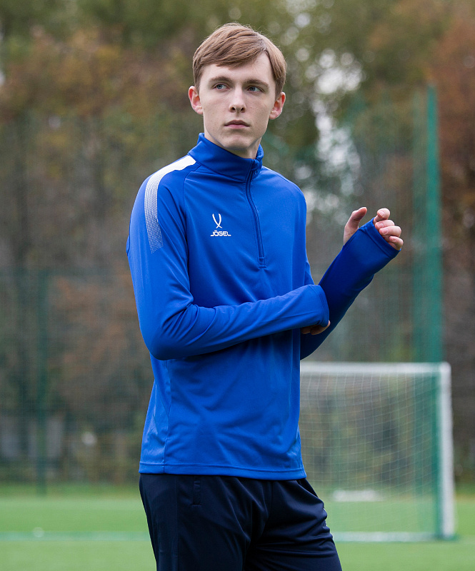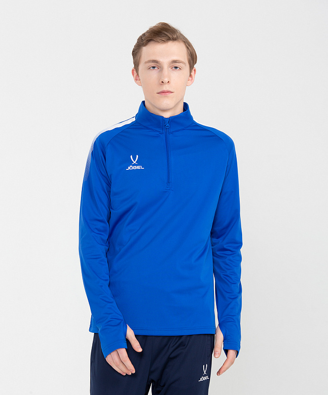Джемпер тренировочный с воротником-стойкой и застежкой-молнией в 3/4 подходит для интенсивных тренировок. Атлетический (приталенный) крой. Рукава реглан. На плечах динамический паттерн-принт с имитацией градиента в виде шестиугольников. Обратите внимание на технологическое решение - низ рукава имеет специальный вырез для большого пальца.
