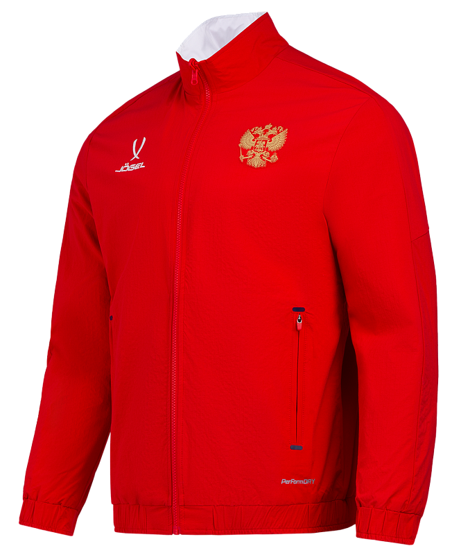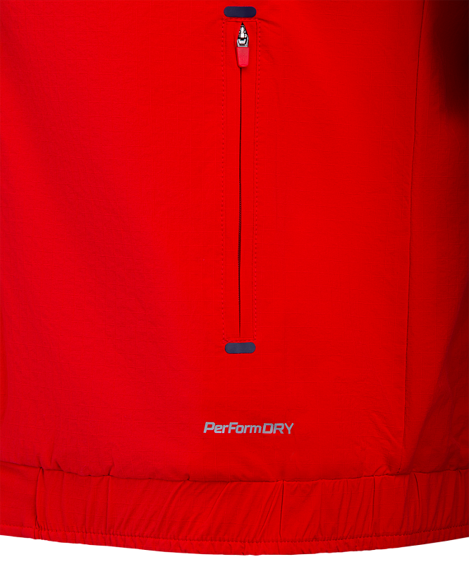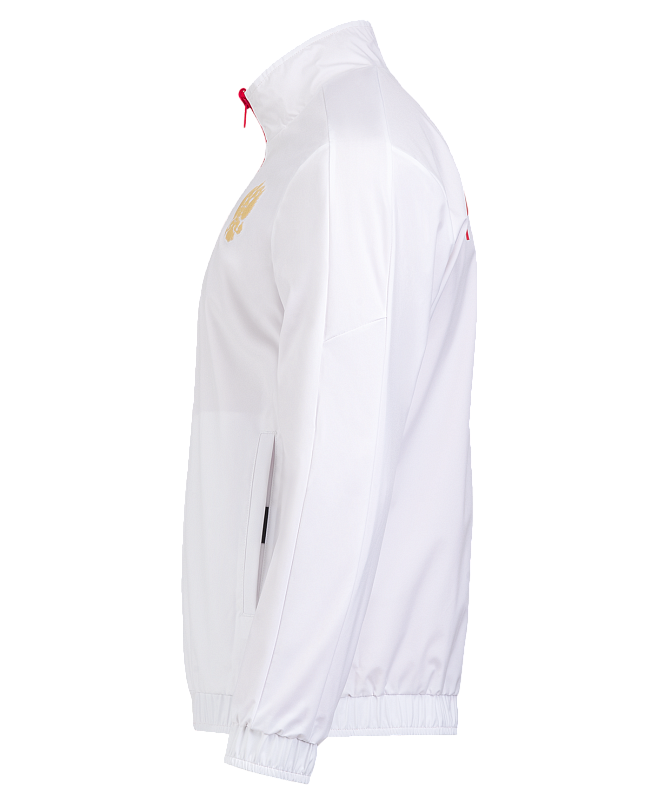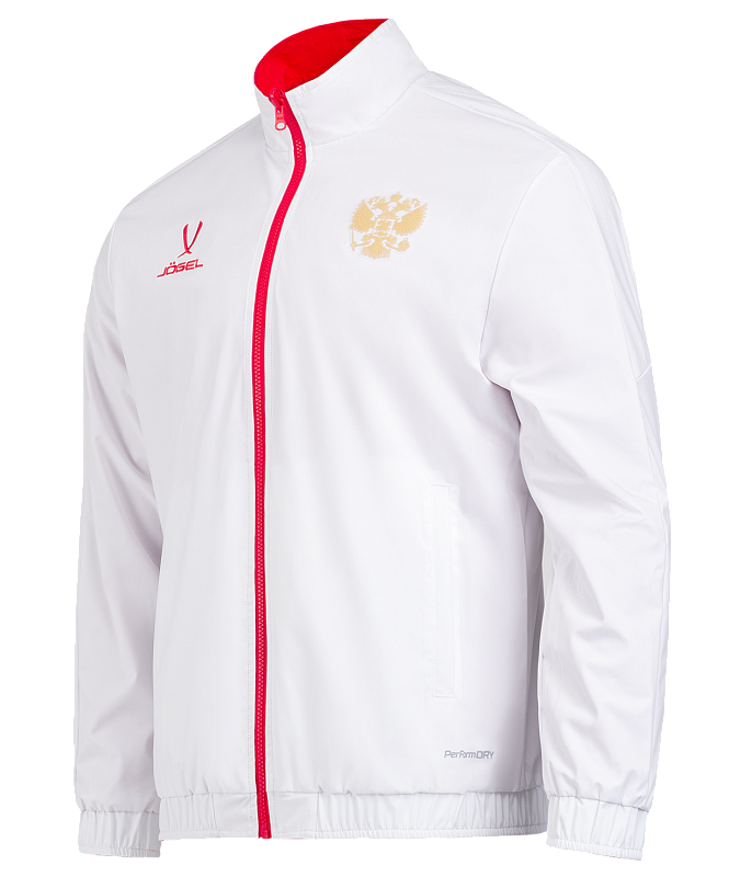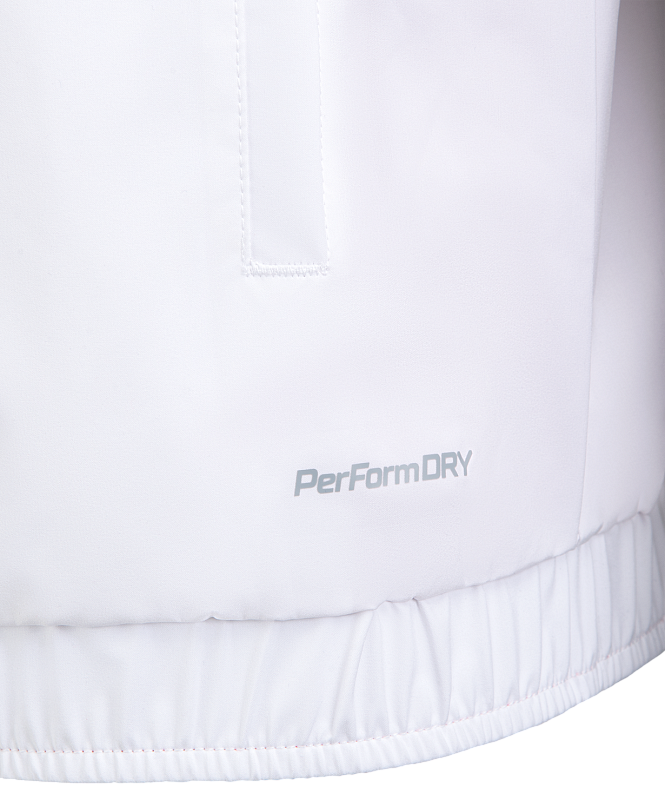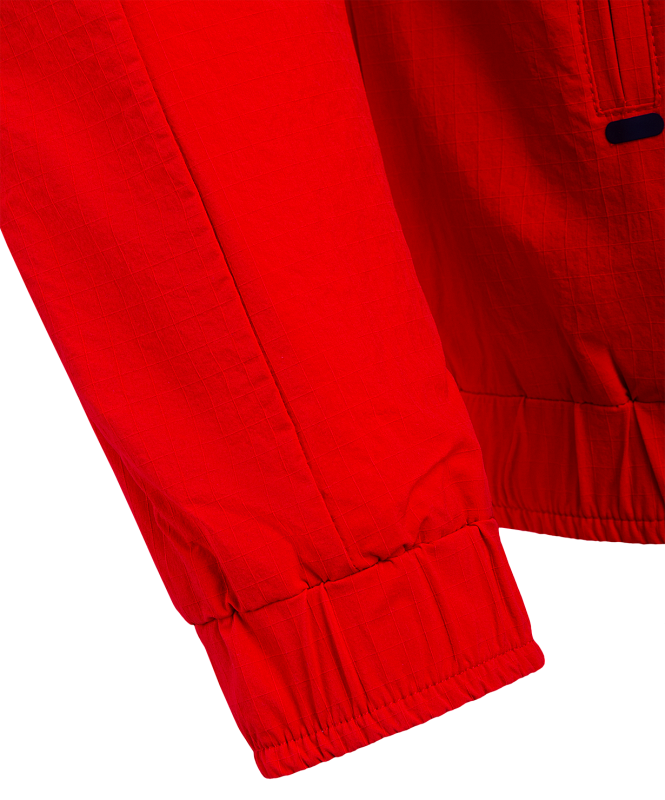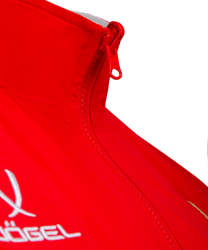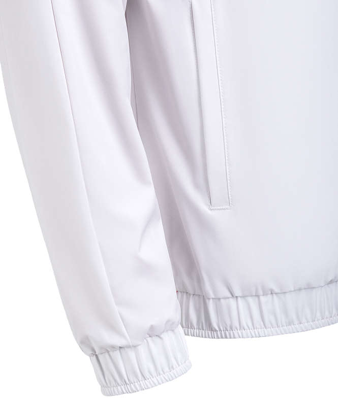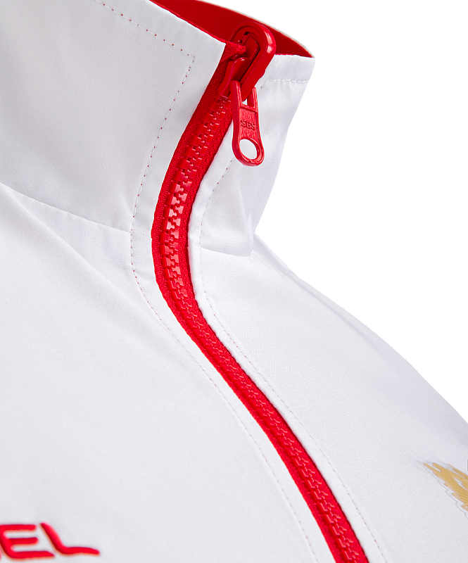 Гимновая куртка с оригинальным дизайном. Одна сторона куртки - красного цвета с фактурой рипстоп, другая сторона - белого цвета из гладкого материала с шелковистой текстурой. Обе стороны обладают влагозащитными свойствами, что обеспечивает дополнительный комфорт при ношении куртки в любую погоду.