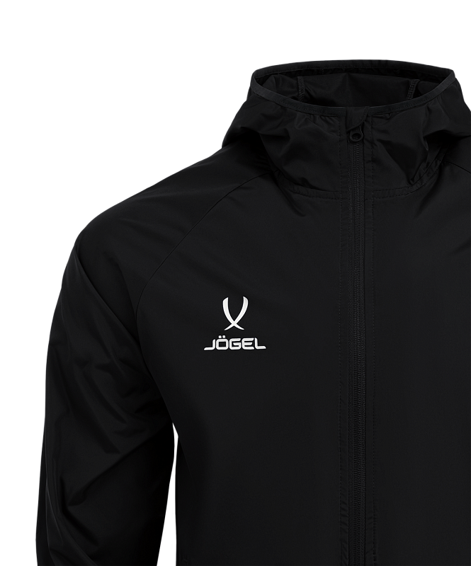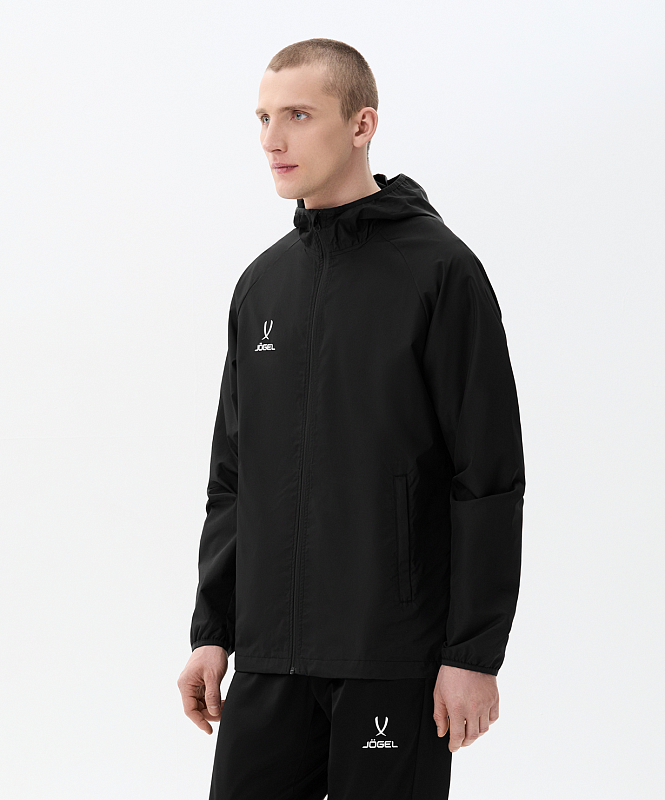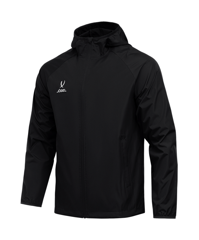 Куртка ветрозащитная Jögel Rain Jacket для занятий спортом при неблагоприятных погодных условиях. Легкая водонепроницаемая и непродуваемая ветровка свободного силуэта с передней реверсной молнией и ветрозащитной планкой имеет 2 боковых кармана и регулируемый по высоте капюшон, а так же регулируемый по ширине низ изделия.