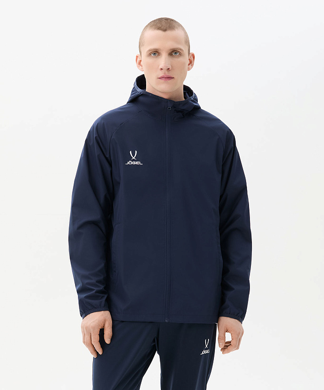 Куртка ветрозащитная Jögel Rain Jacket для занятий спортом при неблагоприятных погодных условиях. Легкая водонепроницаемая и непродуваемая ветровка свободного силуэта с передней реверсной молнией и ветрозащитной планкой имеет 2 боковых кармана и регулируемый по высоте капюшон, а так же регулируемый по ширине низ изделия.