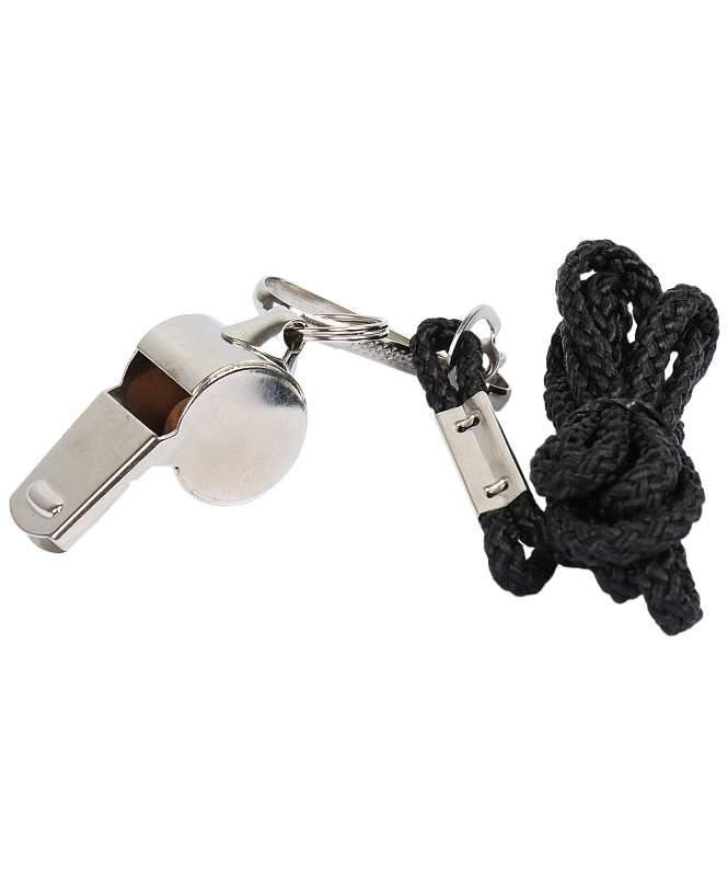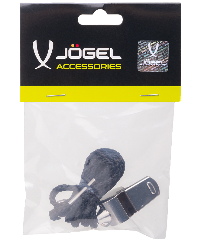 Маленький металлический свисток Jögel с пробковым шариком. В комплекте шнурок. Брендированная упаковка. Длина свистка 5 см.