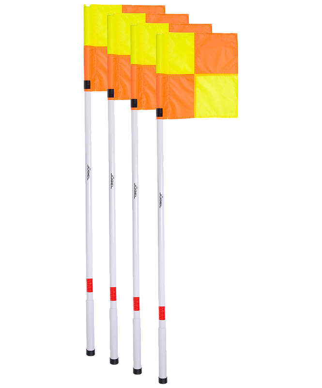Профессиональный комплект угловых флагов Jögel с пружиной и гильзой под стойку. Материал флага выполнен из долговечного полиэсетра. Комплект угловых флагов позволит оборудовать стадион для любого уровня соревнований. Набор состоит из 4 наименований.