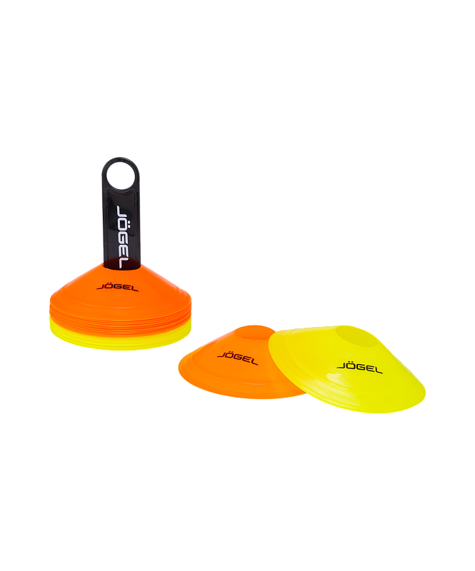 Набор из 24 ярких фишек двух цветов для разграничения пространства во время тренировочного процесса. Выполнены из мягкого, но прочного пластика. Низкий профиль обеспечивает безопасный контакт с фишками. Хорошо держат форму, быстро восстанавливаются после деформации. В комплекте держатель.