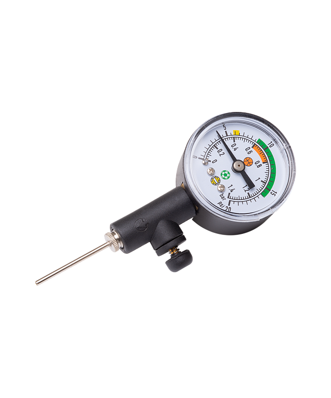 Удобный и компактный механический манометр Jögel для визуального контроля давления в мячах. Подходит для футбольного, волейбольного, баскетбольного мячей. Шкала измерения в барах. Игла в комплекте.