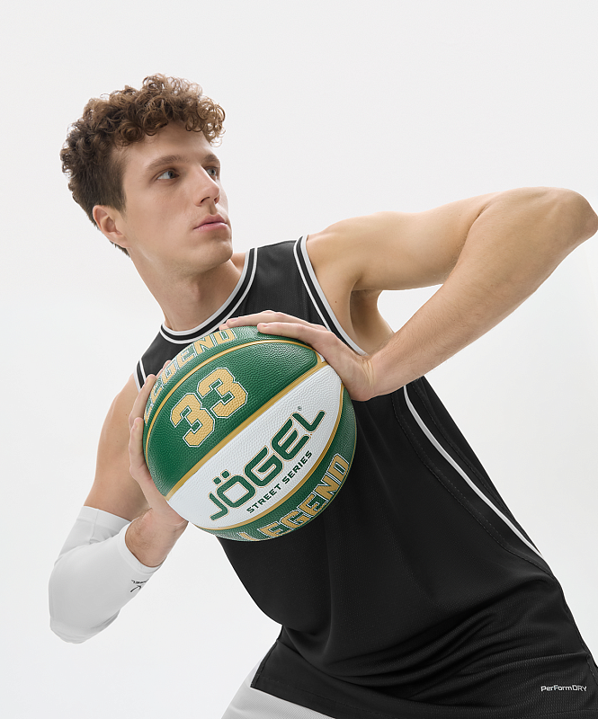 Баскетбольный мяч JOGEL Streets LEGEND33 из линейки Streets. Мяч посвящен легенде американской баскетбольной команды "Бостон Селтикс", олимпийскому чемпиону Ларри Бёрду. Дизайн мяча отражает цветовую палитру игровой формы Ларри, а цифра 33 представляет собой игровой номер Звезды мирового баскетбола.