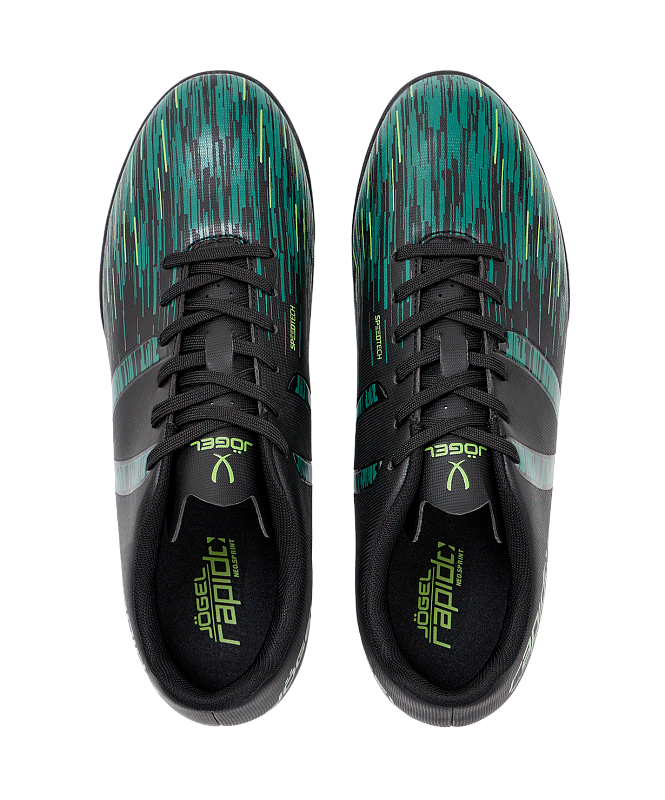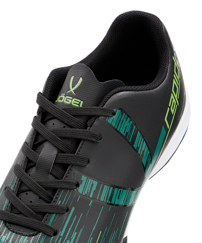 Обувь для футзала Rapido от JOGEL из линейки neo.Sprint станет отличным выбором для тренировок и матчей. Верх выполнен из качественного полиуретана: детали носка, берца и задинки обеспечивают необходимую жесткость и надежную фиксацию стопы. Анатомическая колодка помогает удерживать стопу в правильном положении, а мягкая стелька из ЭВА распределяет вес и делает движения комфортными при длительных тренировках.