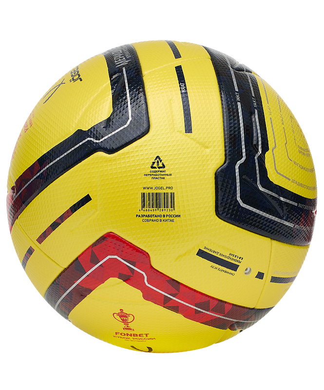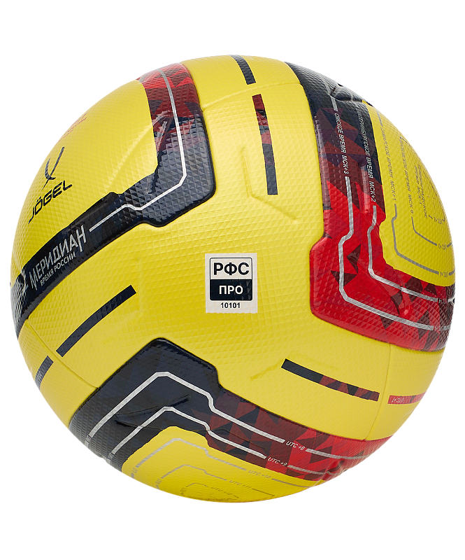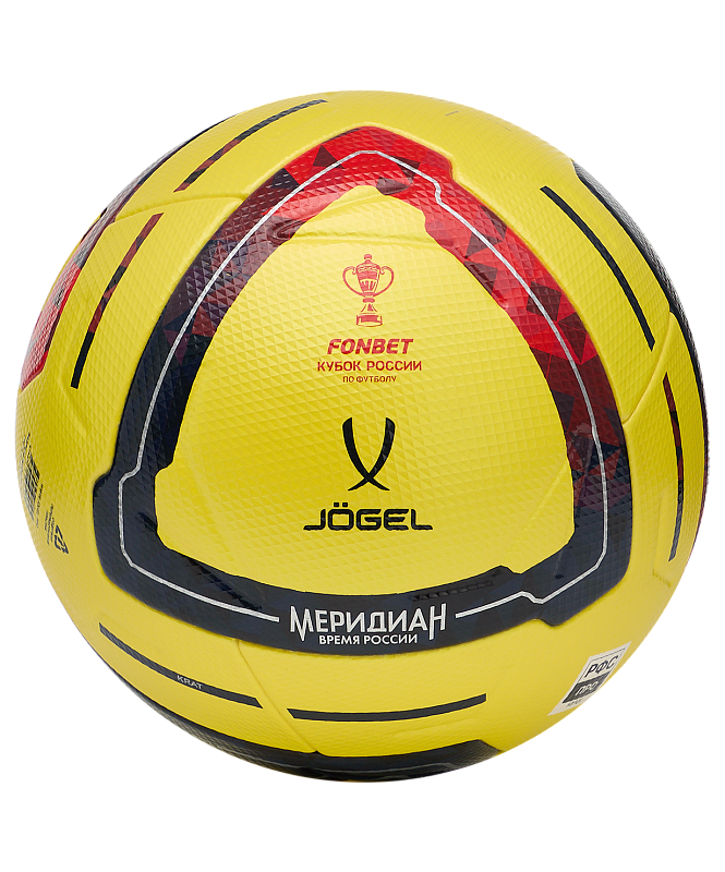 JÖGEL Meridian Elite Russian Cup №5 - этот профессиональный мяч, разработан совместно с РФС. Выполнен в ярком жёлтом цвете специально для плохих погодных условий. Дизайн мяча отражает футбольный дух нашей страны. Россия включает в себя одиннадцать часовых поясов, и на всем этом пространстве люди любят футбол.