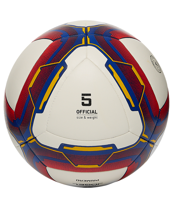 JÖGEL Primero - обновлённый дизайн в узнаваемых клубных оттенках одной из самых продаваемых моделей в линейке Pro Training. Primero - мяч матчевого уровня, соответствующий всем требованиям FIFA и разработанный по новейшим технологиям создания футбольных мячей.